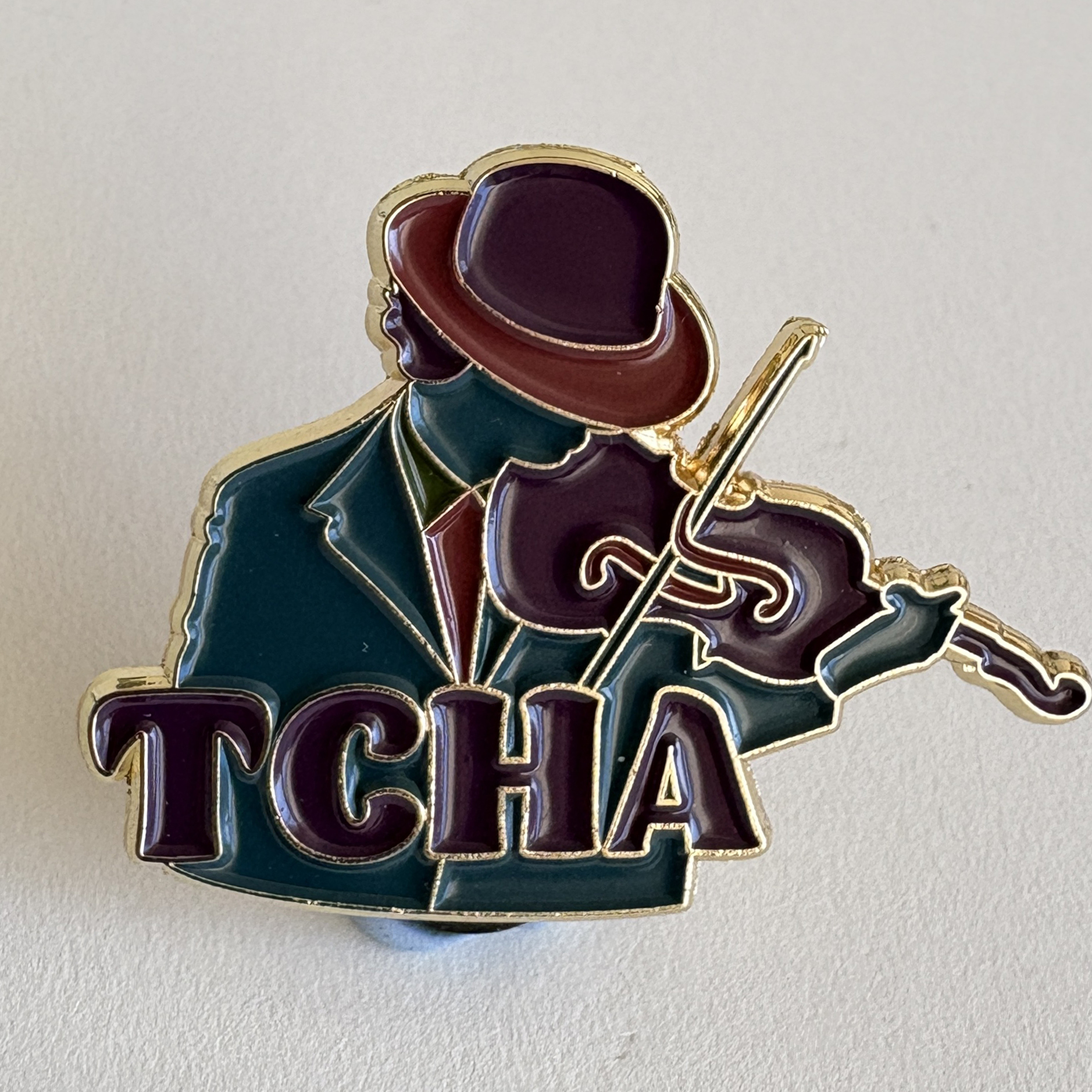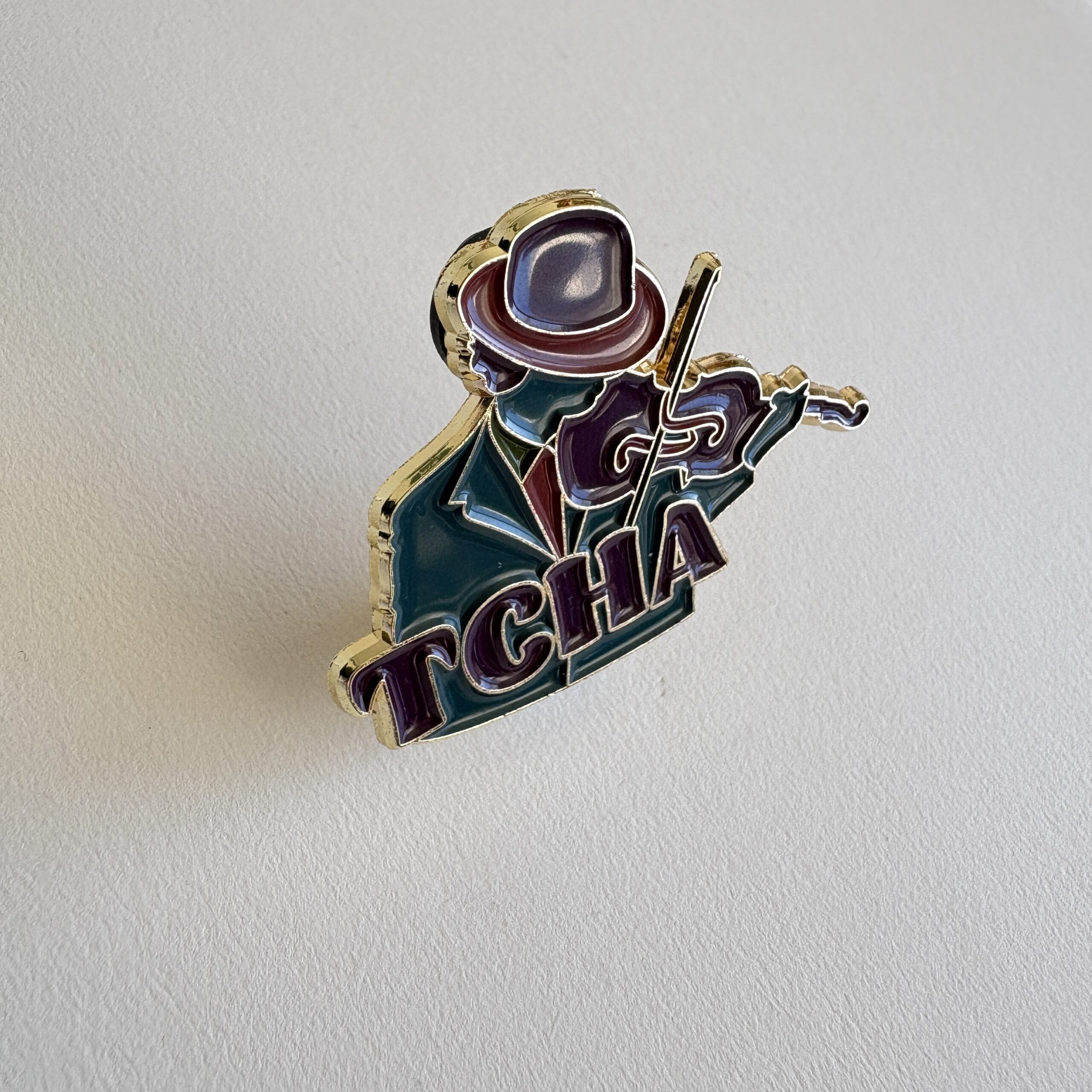 A soft-enamel pin celebrating Tcha Limberger, widely admired for his deep musicality, expressive phrasing, and mastery of both Gypsy jazz and Central European folk traditions. His silhouette, paired with the distinctive Tcha lettering, reflects the quiet authority and artistic clarity for which he is known.